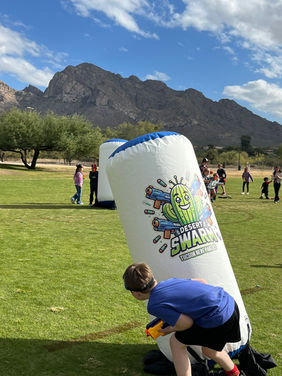 Our mobile NERF inflatable battlefield is perfect for your next Birthday Party, Family Gathering, School Event or Team Building Event